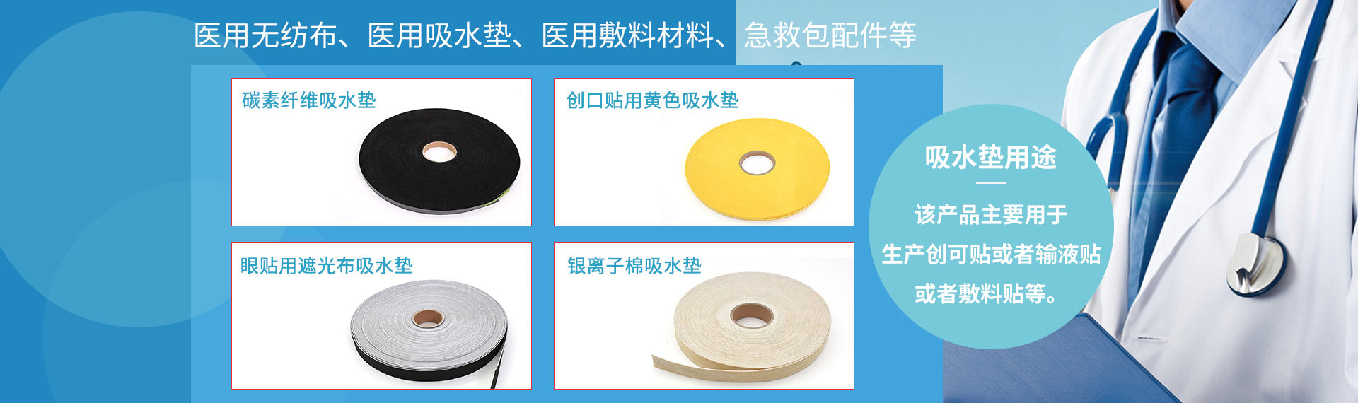 公司主要產(chǎn)品為醫(yī)用無(wú)紡布的延伸,如醫(yī)用無(wú)紡布,醫(yī)用吸水墊、醫(yī)用敷料、醫(yī)用石膏襯墊等一次性醫(yī)用耗材。